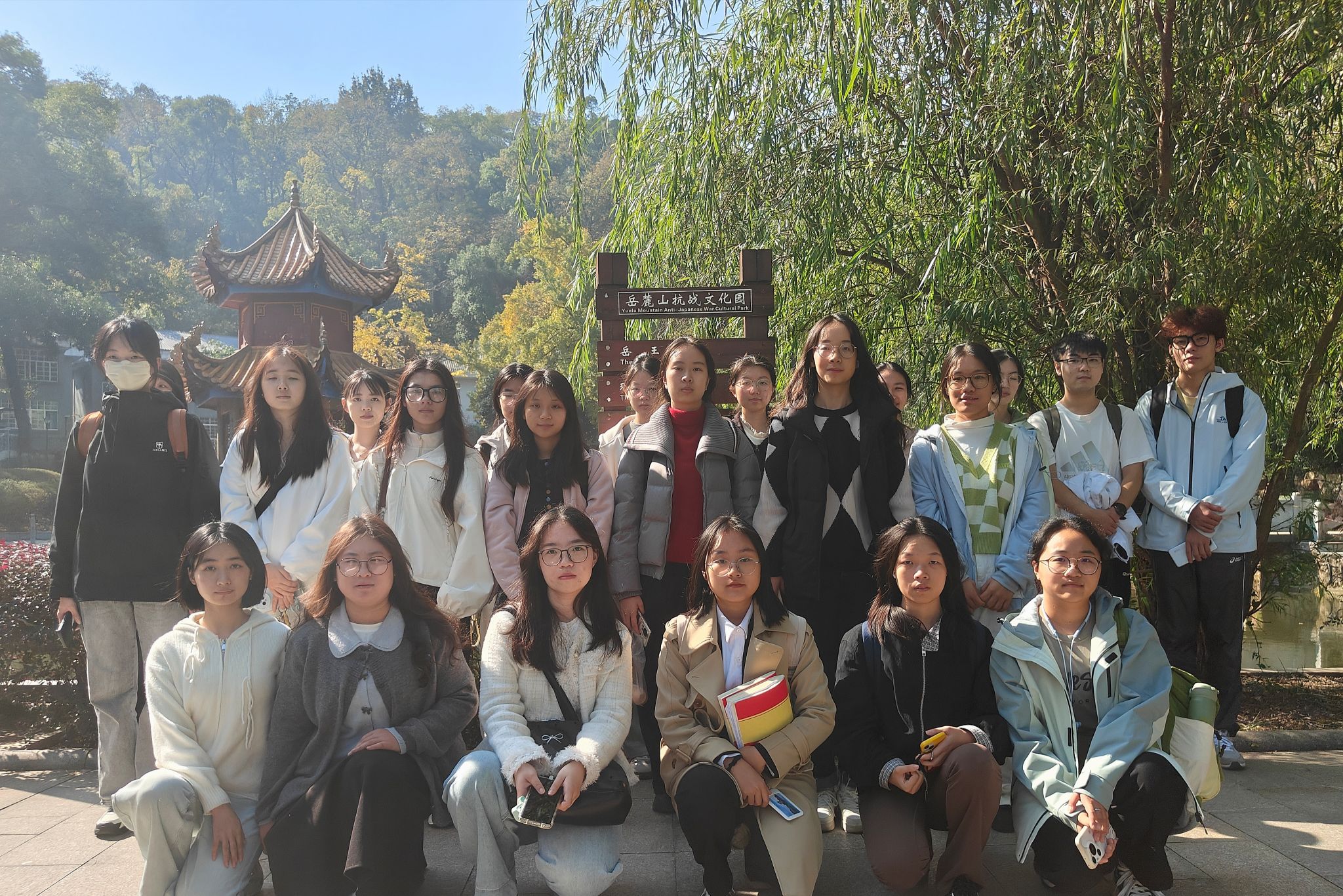 活动中,支部成员在岳王亭前聆听讲解,了解其作为抗战时期精神象征的历史背景,学习岳飞“精忠报国”的爱国精神与崇高品格。岳王亭不仅是纪念民族英雄岳飞精忠报国、赤胆忠心的物质载体,更在烽火连天的岁月里,激励了无数湖湘子弟乃至全中国人民同仇敌忾、共御外侮。通过观摩亭体结构与石刻楹联,成员们对其中蕴含的爱国精神与民族气节形成更深入的认识。参观结束后,成员们结合现场感受,围绕历史文脉传承与文化自信主题展开交流讨论。支部成员一致认为,中华文明延续不断的精神基因是中华民族屹立世界民族之林的根本所在。