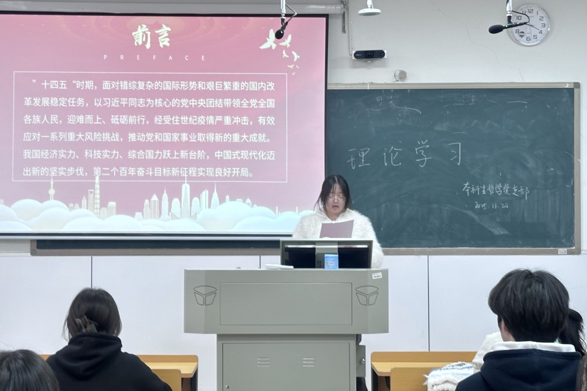 (通讯员 万梓妍 张玉怡 谭欣雨)为深入学习党的二十届四中全会精神,领悟精神内核、凝聚奋斗力量,11月20日下午,永利皇宫官方网站,永利皇宫官方网站本科生哲学党支部(以下简称“哲学党支部”)在景德楼中栋112教室开展“深入学习贯彻党的二十届四中全会精神”为主题的理论学习活动。