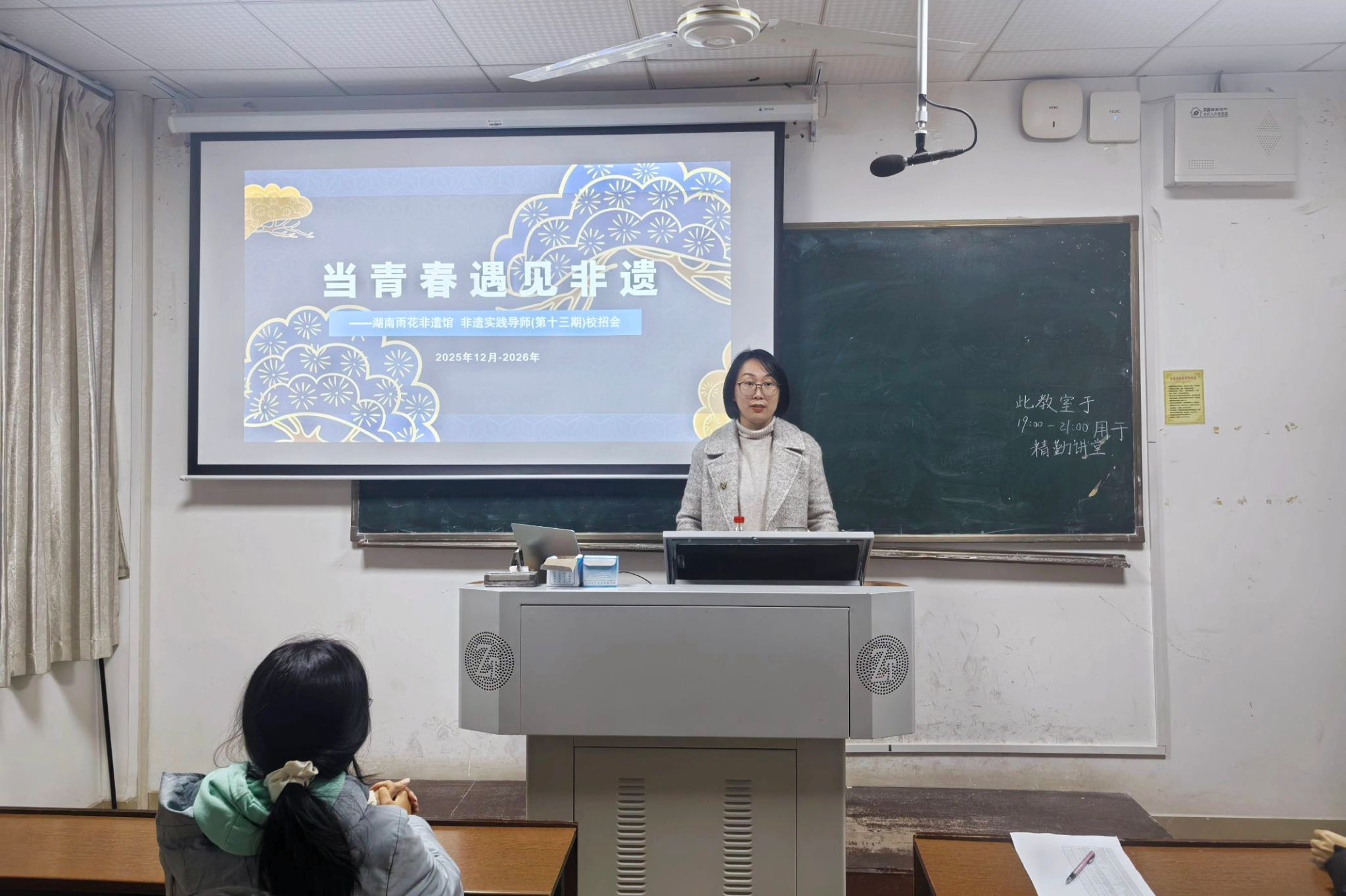 (通讯员 刘金瑶 曹晨曦 吴祖乐)为推动非遗进校园,培养优秀的非遗传播使者,永利皇宫官方网站(以下简称“公管院”)于12月12日晚在景德楼中栋311教室举办了以“匠心拾遗 薪火相传”为主题的精勤讲堂,此次精勤讲堂由湖南雨花非遗馆(湖南省铸牢中华民族共同体意识体验馆(长沙))馆长助理彭智慧担任主讲人,公管院2023级、2024级、2025级共50余名同学参加此次精勤讲堂。