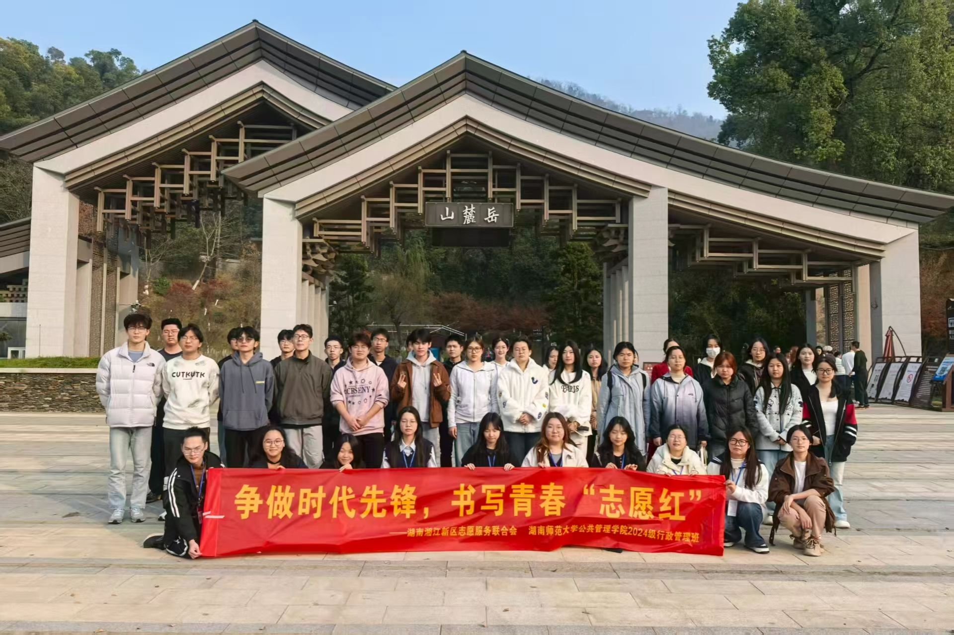 (通讯员 张惟斌 刘晨昊 席子坤)12月11日下午,永利皇宫官方网站,永利皇宫官方网站(以下简称“公管院”)2024级行政管理班与湖南湘江新区志愿服务联合会在岳麓山景区共同组织了一场环保志愿服务活动。该活动以“争做时代先锋,书写青春志愿红”为主题,旨在通过实际行动传播生态文明理念。