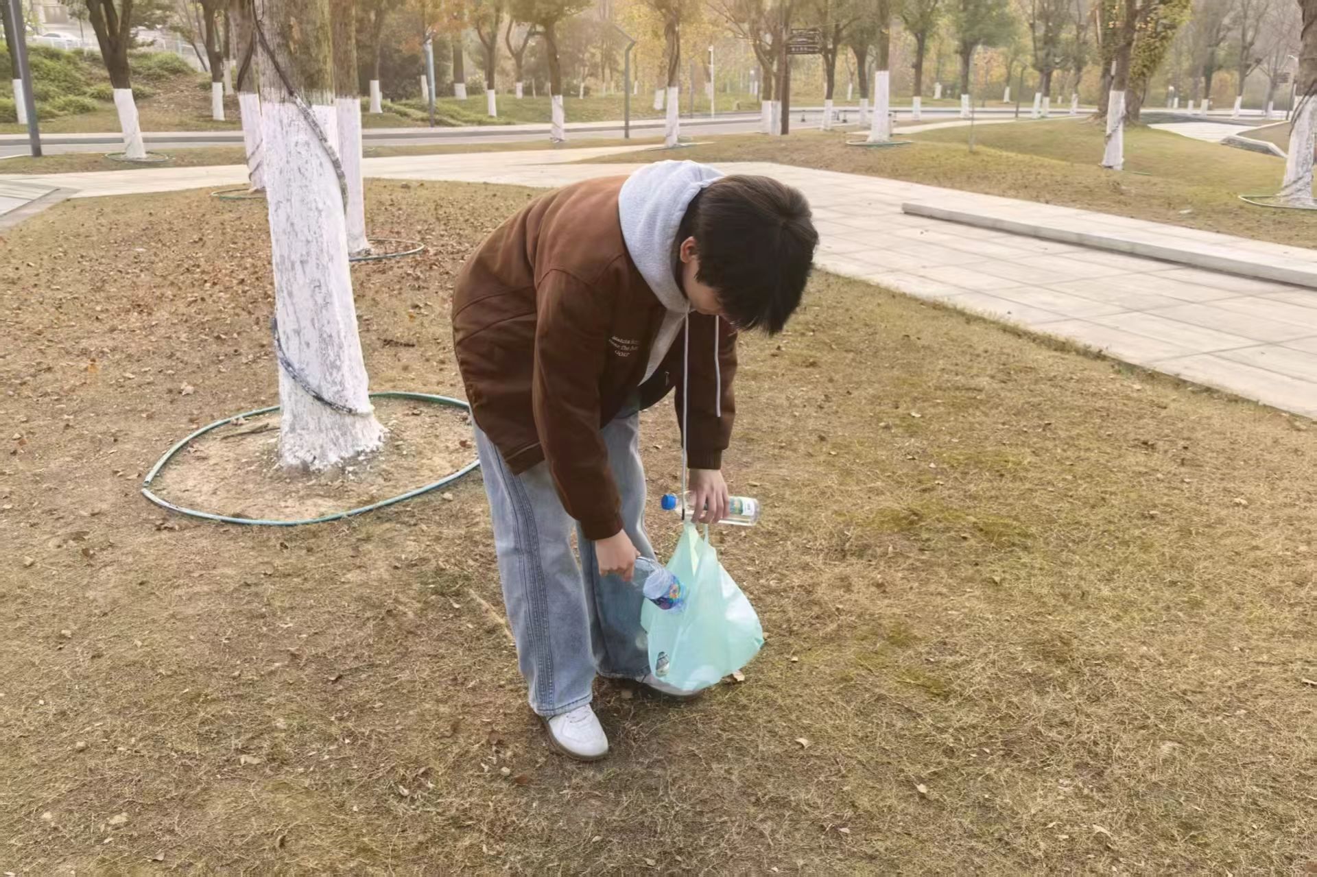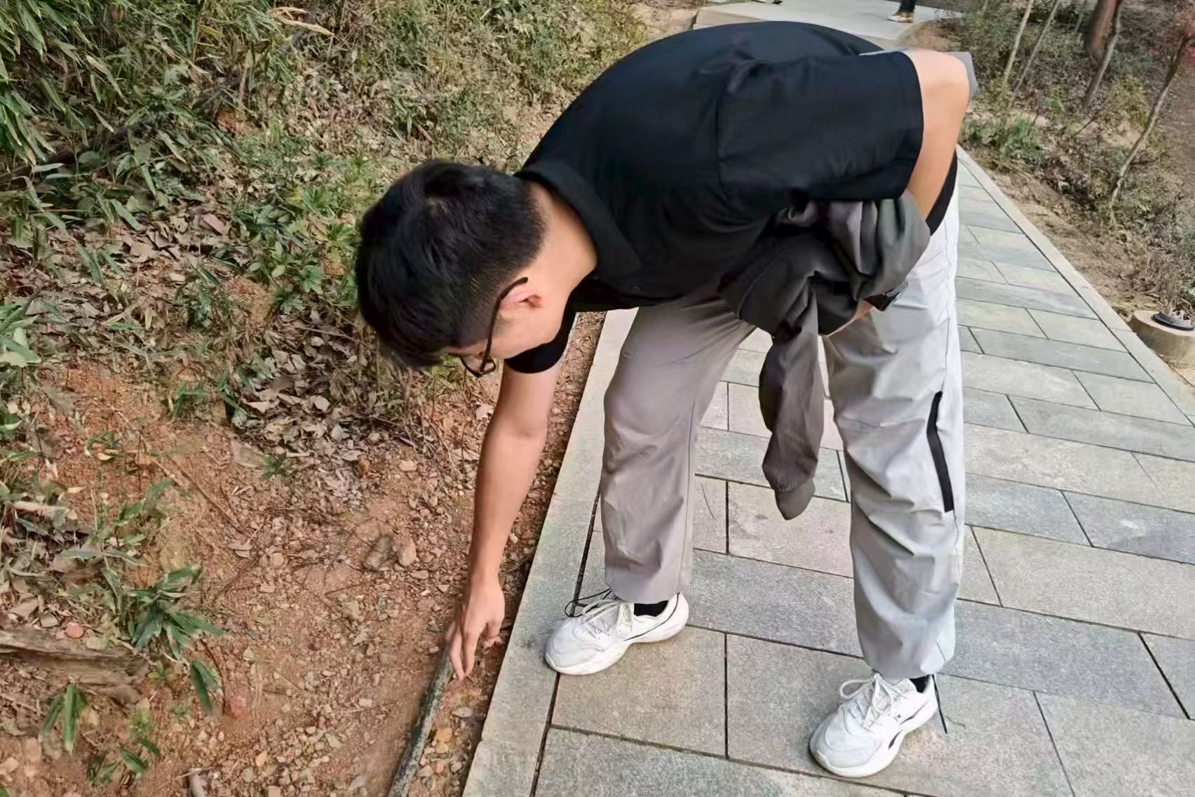 行政管理班50余名学生在岳麓山西门集合。同学们以宿舍为单位列队,手持班旗并展示主题横幅。经过简短动员后,志愿者们佩戴挂牌,开始分组沿景区步道和林间空地清理烟头、食品包装等废弃物,并将垃圾分类投放到指定垃圾桶中。在清理过程中,志愿者们相互配合,团结协作。经过清理,景区步道和林间空地变得更加整洁。
