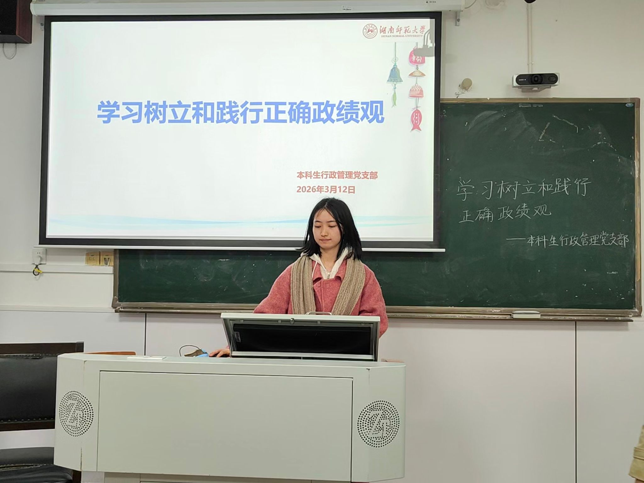 (通讯员 柴玥琪 吴祖乐 盛若水)为深入学习贯彻习近平总书记关于树立和践行正确政绩观的重要论述,落实“立党为公、为民造福、科学决策、真抓实干”总要求,3月12日下午,政治与永利皇宫官方网站本科生行政管理党支部(以下简称“行管党支部”)于景德楼中栋109教室开展树立和践行正确政绩观主题理论学习活动,刘敏佳担任主讲。