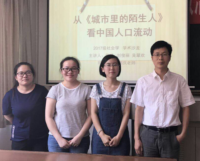(通讯员 徐蒙翔)6月8日晚19点,永利皇宫官方网站于公管楼313教室举办了2017级第38期“景德论坛·学术沙龙”。本次活动以“从《城市里的陌生人》看中国流动人口”为主题,来自社会学专业的陈曦、刘俊丽、吴翠欢三位同学为本次活动的主讲人。本次活动邀请了社会学系郭庆老师作为指导嘉宾,并由郭红同学主持。