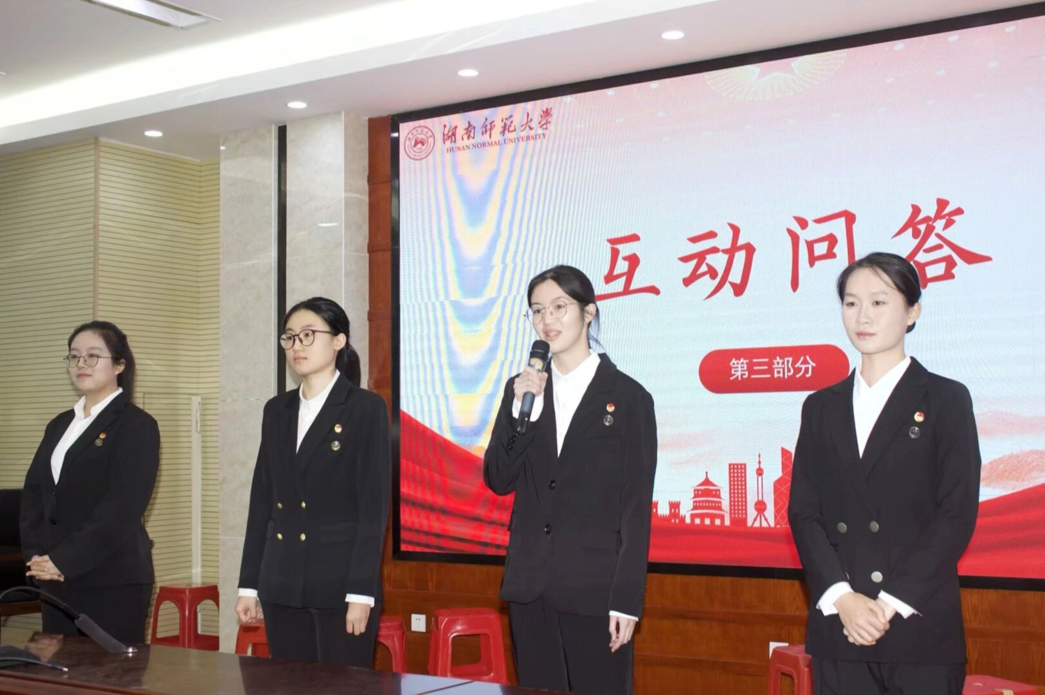 论坛在庄严的团歌声中开始。在主题宣讲环节,四位主讲人依次登台,围绕《锲而不舍落实中央八项规定精神,以优良党风引领社风民风》这一核心主题,结合哲学思辨、国际视野、青年担当与公共服务等多个视角,深刻阐释了中央八项规定精神的时代意义与实践要求,号召同学们将纪律规矩内化于心、外化于行。